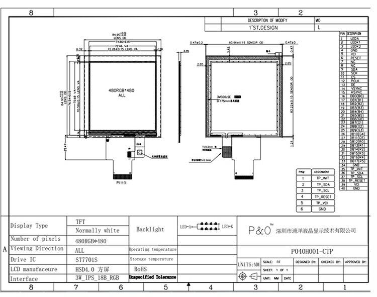 | منطقه نمایش | 71.856 ((H) x70.176 ((V) mm |